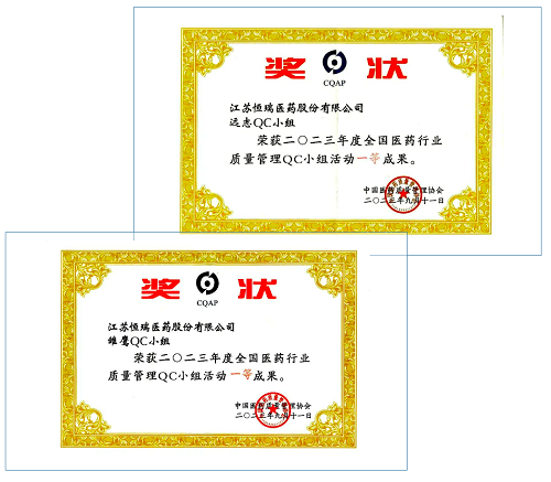 近日,第44次全国医药行业质量管理(QC)小组成果发表交流在甘肃兰州举行。会上,永利娱乐城医药远志QC小组、雏鹰QC小组荣获2023年度全国医药行业质量管理QC小组活动一等奖。